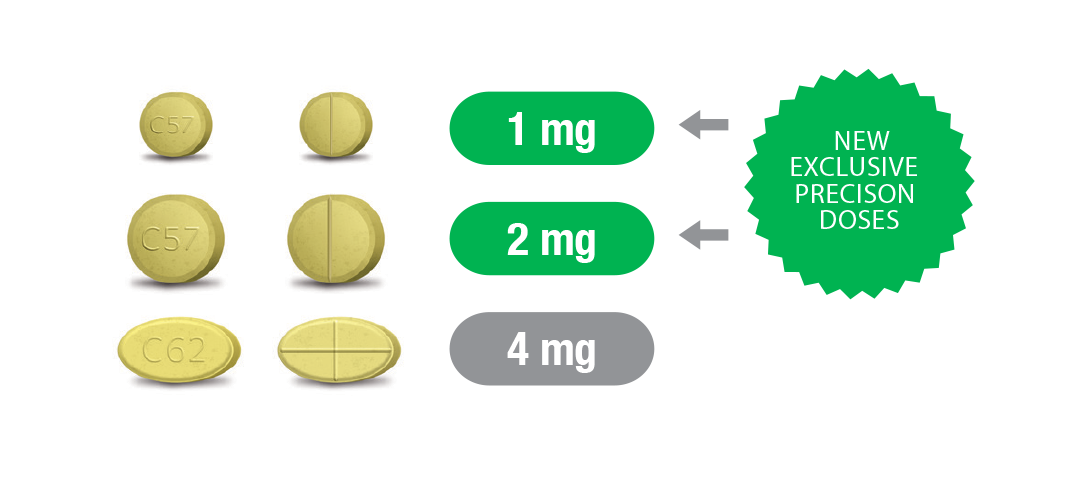 Improved dosing convenience with exclusive precision 1 mg & 2 mg doses